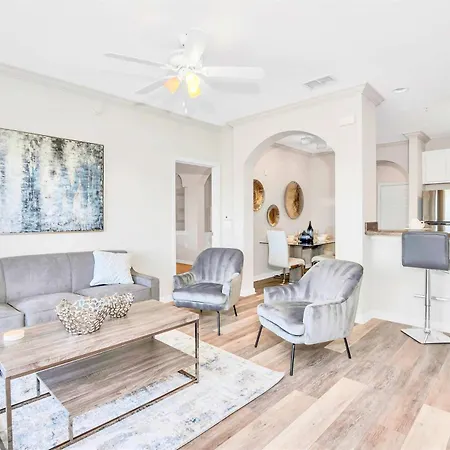 Modern 3Br Resort Condo With Pool Near Disney Orlando villa ligt op 3 km van het Polo Park Golf Course en biedt toegang tot toeristische plekken in de omgeving. Het vakantiehuis ligt in de wijk West Kissimmee in Orlando en beschikt over een zonneterras met het uitzicht over de stad.